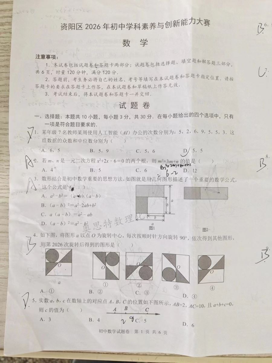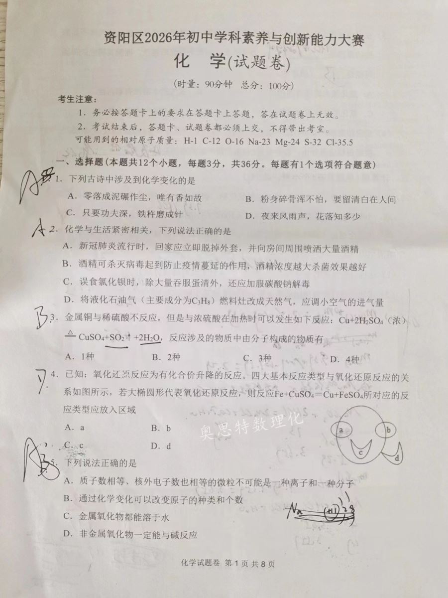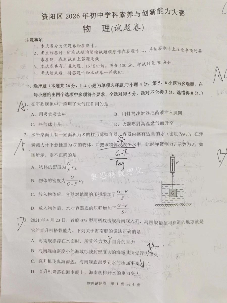 考试时间:2026年3月28日、29日;参赛对象:九年级